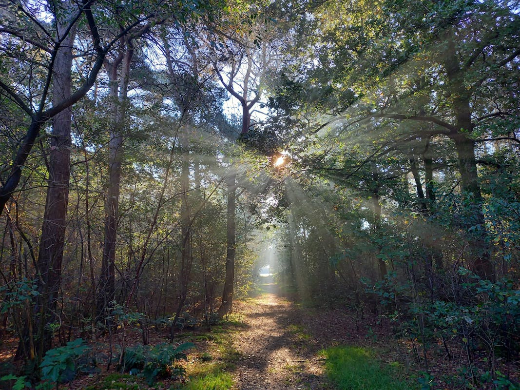 • Een bosbadwandeling van ± 2,5 uur door gevarieerd bos- en heidegebied, waarbij we - grotendeels in stilte - traag lopen, stilstaan en zitten. De afstand die we afleggen is 2,5 kilometer en vereist (zeer) weinig fysieke inspanning.