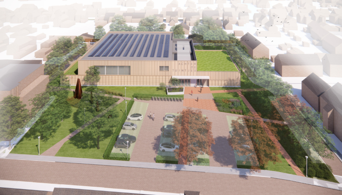 | 29-02-2024 | Tekening van ontwerp sporthal (schuin voorzijde) | ![]() |